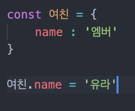 => 등호로 재할당만 막는 역할이다. const로 담은 object 수정은 자유롭게 가능하다. (자바스크립트때도 몰랐는데 지식 get)