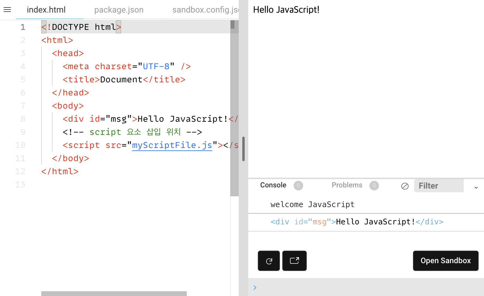 - HTML에 JavaScript를 적용하기 위해서는 <script> 태그를 이용