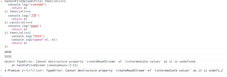 .then().then()으로 체이닝할경우 .then()이 실패하면 밑으로 내려가지 않는다. catch를 통해서는 받을수있다.