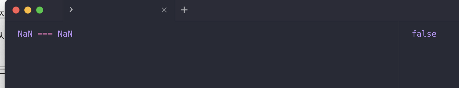 오! 이런신기한일이..NaN은 자신과 일치하지 않는 유일한 값이라고한다.