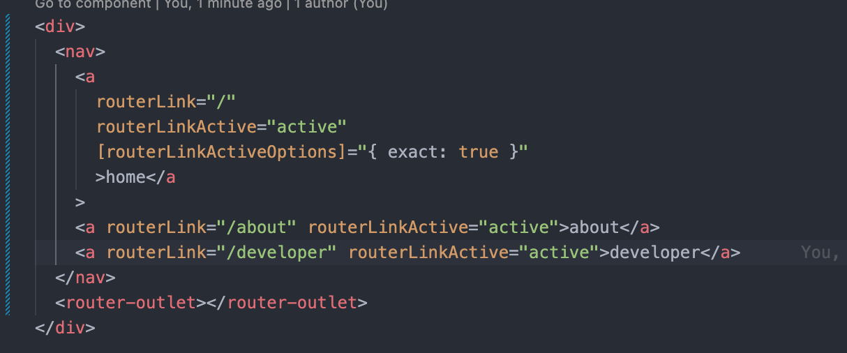 {exact: true} -> 이게 왜필요하냐면 user/1 user/2 이렇게 뒤에 쿼리가 붙는다면 routerLInktActiveOption이 필요하다