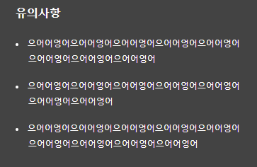 ul, li 작업중에 난관에 봉착 원했던 모습은 위의 스타일인데 아무것도 적용하지않았을 시 아래와같은 모양이다.