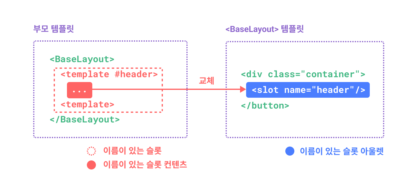 이름있는 slot전달할때는 template을 함께 사용해서 전달을 해야한다.