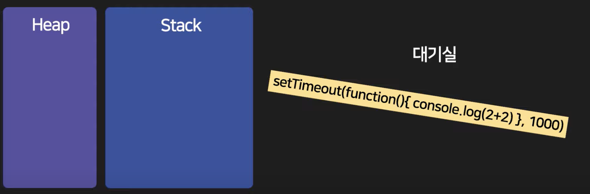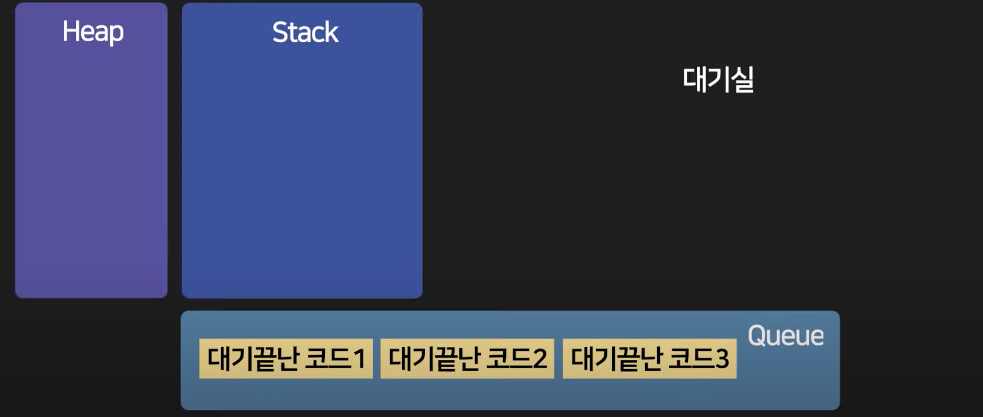 대기실보내는 코드 : 위에서 봤던 비동기처리 예들 <- 기다림이 필요한 코드들은 대기실행
