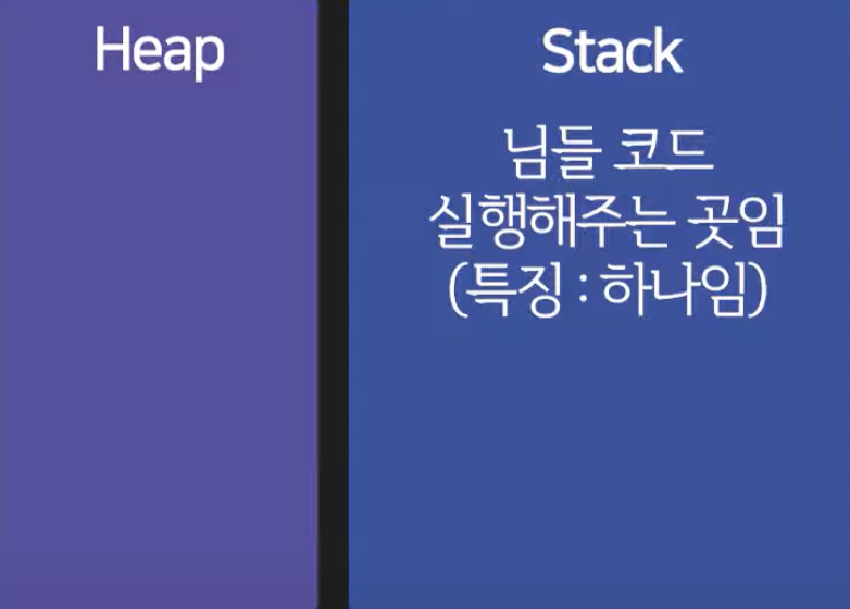 스택은 한개밖에없다. 한번에 코드 한줄밖에 실행을 못한다 =single threaded 언어다 (전문용어로 표현한것)