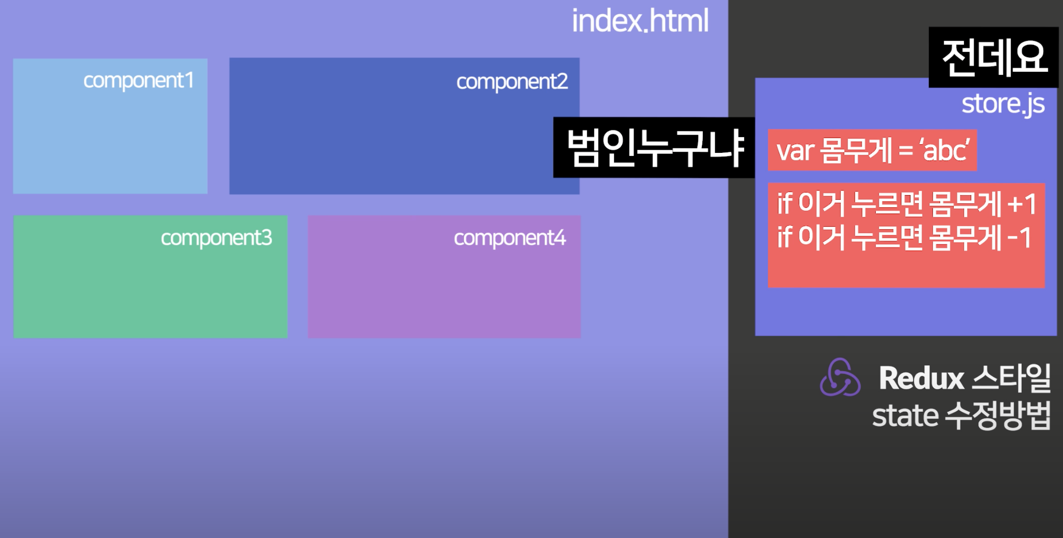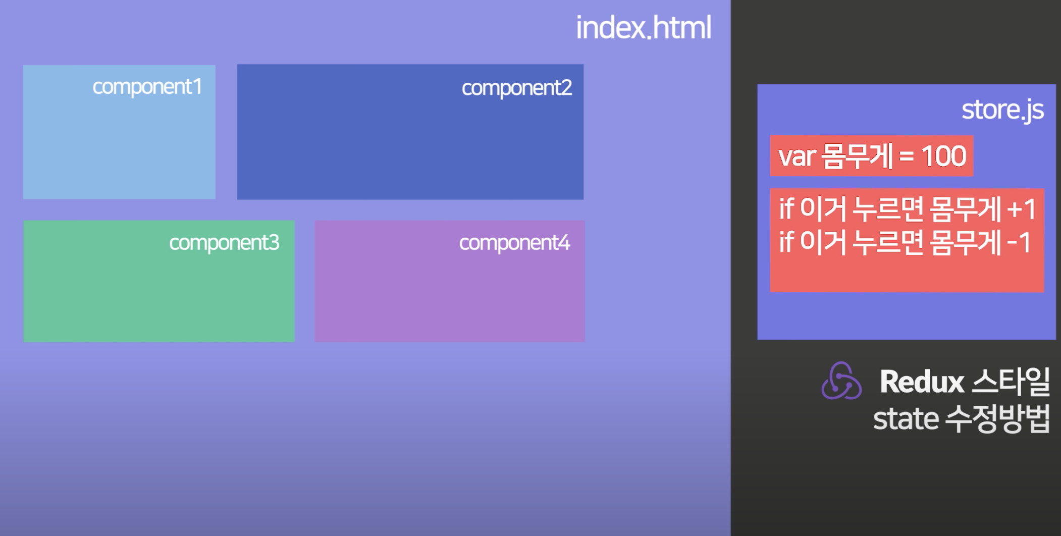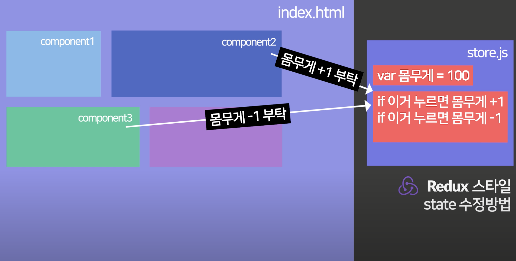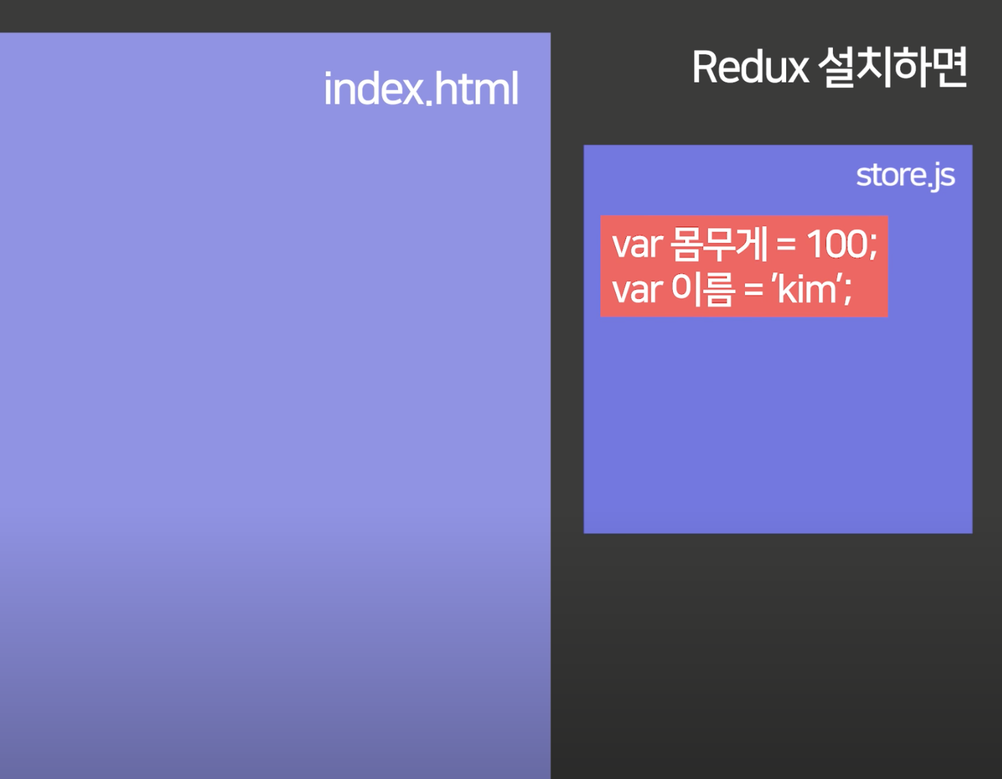 Redux를 설치한 후 state를 저장해두면. props로 내려줄 필요없이 모든 컴포넌트들이 꺼내다가 사용가능하다